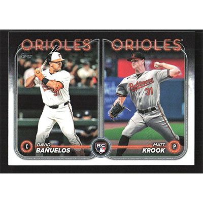 This is a 2024 Topps Update David Banuelos and Matt Krook Rookie Combos baseball card. The card is #US315 and pictures show condition. Team(s): Baltimore Orioles Rookie Card (RC)