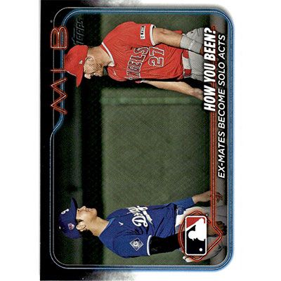 This is a 2024 Topps Update Shohei Ohtani and Mike Trout Veteran Combos How You Been baseball card. The card is #US76 and pictures show condition. Team(s): Los Angeles Dodgers