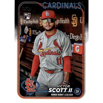 This is a 2024 Topps Update Victor Scott II Rookie Debut baseball card. The card is #US77 and pictures show condition. Team(s): St. Louis Cardinals Rookie Card (RC)