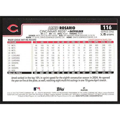 This is a 2025 Topps Amed Rosario baseball card. The card is #116 and pictures show condition.