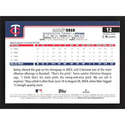 This is a 2025 Topps Bailey Ober baseball card. The card is #12 and pictures show condition.