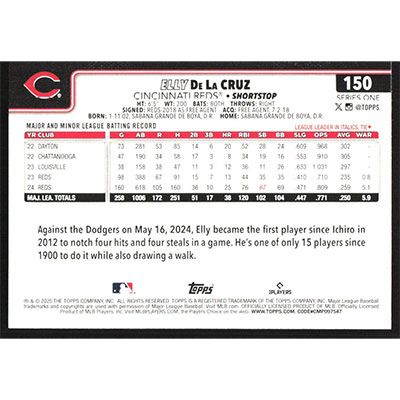 This is a 2025 Topps Elly De La Cruz Future Stars baseball card. The card is #150 and pictures show condition.