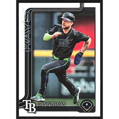 This is a 2025 Topps Brandon Lowe baseball card. The card is #153 and pictures show condition.