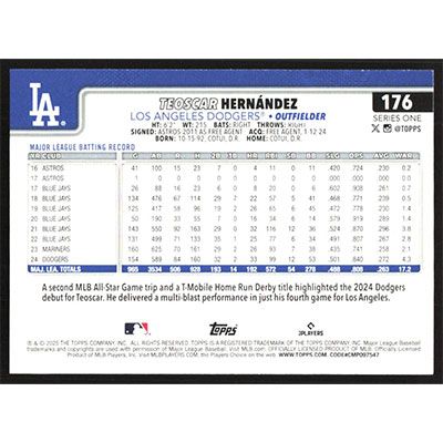 This is a 2025 Topps Teoscar Hernandez baseball card. The card is #176 and pictures show condition.