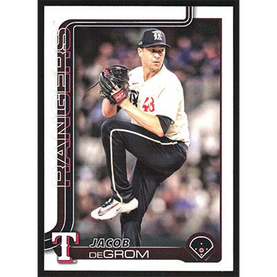 This is a 2025 Topps Jacob deGrom baseball card. The card is #208 and pictures show condition.