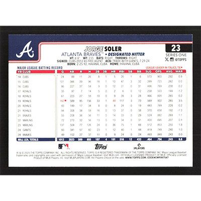 This is a 2025 Topps Jorge Soler baseball card. The card is #23 and pictures show condition.
