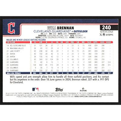 This is a 2025 Topps Will Brennan baseball card. The card is #240 and pictures show condition.