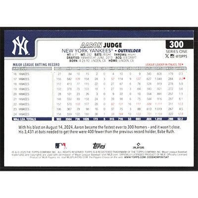 This is a 2025 Topps Aaron Judge baseball card. The card is #300 and pictures show condition.