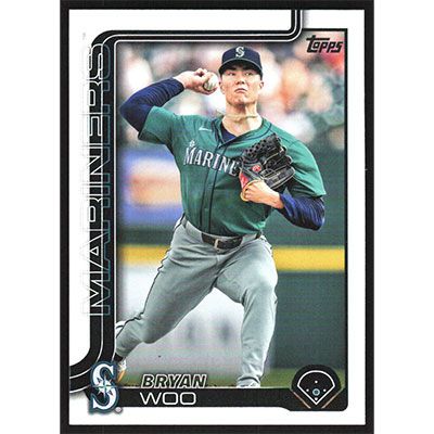 This is a 2025 Topps Bryan Woo baseball card. The card is #327 and pictures show condition.