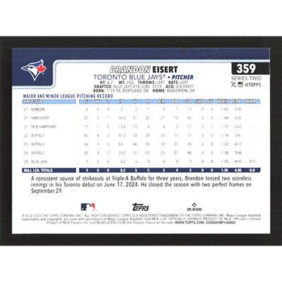 This is a 2025 Topps Brandon Eisert baseball card. The card is #359 and pictures show condition.