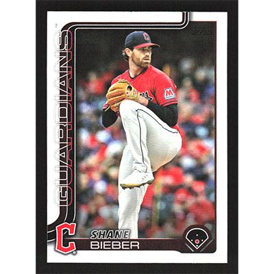 This is a 2025 Topps Shane Bieber baseball card. The card is #379 and pictures show condition.