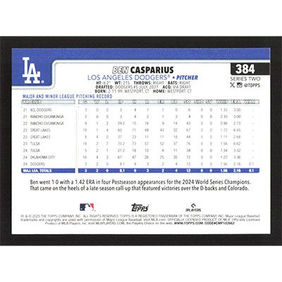 This is a 2025 Topps Ben Casparius baseball card. The card is #384 and pictures show condition.