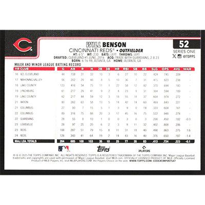This is a 2025 Topps Will Benson baseball card. The card is #52 and pictures show condition.