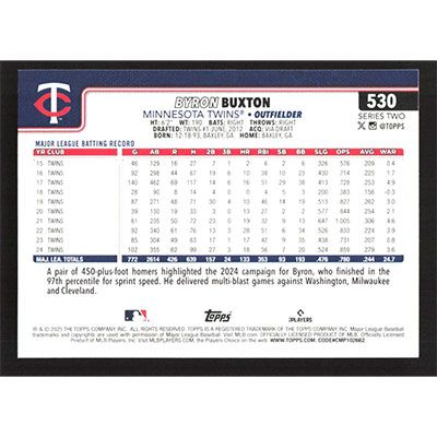 This is a 2025 Topps Byron Buxton baseball card. The card is #530 and pictures show condition.