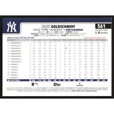 This is a 2025 Topps Paul Goldschmidt baseball card. The card is #561 and pictures show condition.
