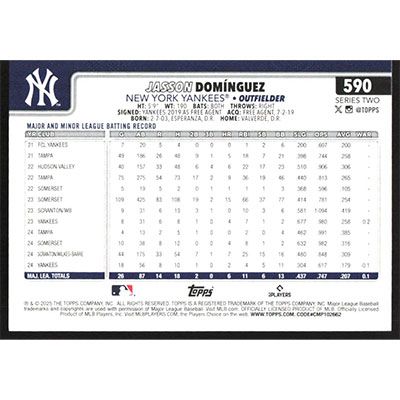 This is a 2025 Topps Jasson Dominguez Future Stars baseball card. The card is #590 and pictures show condition.