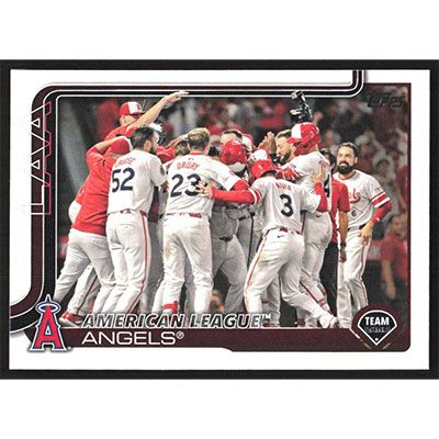 This is a 2025 Topps Los Angeles Angels Team Card baseball card. The card is #85 and pictures show condition.