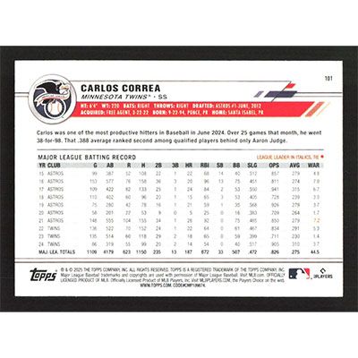 This is a 2025 Topps All-Star Game Carlos Correa baseball card. The card is #101 and pictures show condition.
