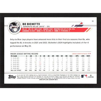 This is a 2025 Topps All-Star Game Bo Bichette baseball card. The card is #12 and pictures show condition.