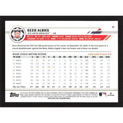 This is a 2025 Topps All-Star Game Ozzie Albies baseball card. The card is #44 and pictures show condition.