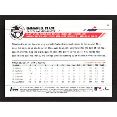 This is a 2025 Topps All-Star Game Emmanuel Clase baseball card. The card is #56 and pictures show condition.