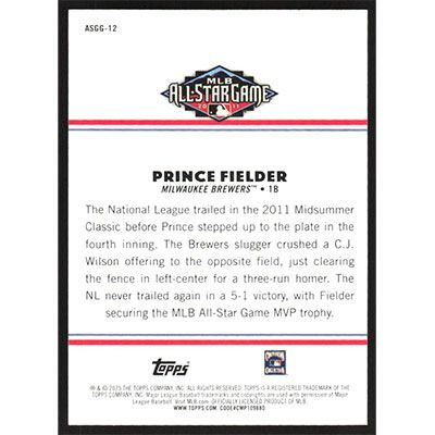 This is a 2025 Topps All-Star Game All-Star Greats Prince Fielder baseball card. The card is #ASGG-12 and pictures show condition. Team(s): Milwaukee Brewers