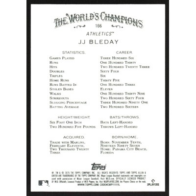 This is a 2025 Topps Allen & Ginter JJ Bleday baseball card. The card is #166 and pictures show condition.