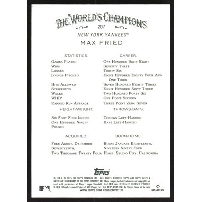 This is a 2025 Topps Allen & Ginter Max Fried baseball card. The card is #207 and pictures show condition.