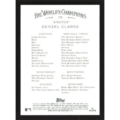 This is a 2025 Topps Allen & Ginter Denzel Clarke baseball card. The card is #278 and pictures show condition.