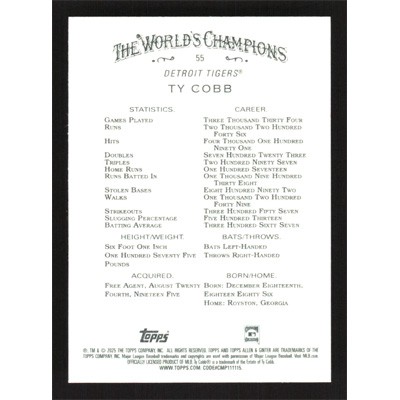 This is a 2025 Topps Allen & Ginter Ty Cobb baseball card. The card is #55 and pictures show condition.