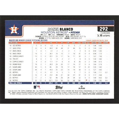 This is a 2025 Topps Chrome Ronel Blanco baseball card. The card is #292 and pictures show condition.