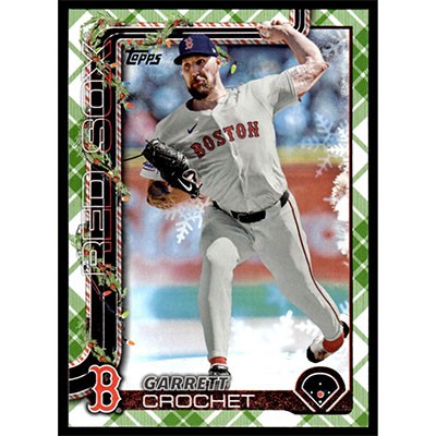 This is a 2025 Topps Holiday Green Plaid Garrett Crochet baseball card. The card is #H22 and pictures show condition.