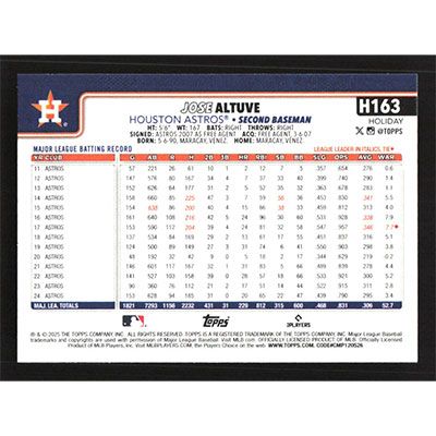 This is a 2025 Topps Holiday Jose Altuve baseball card. The card is #H163 and pictures show condition.