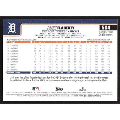 This is a 2025 Topps Sandglitter Jack Flaherty baseball card. The card is #504 and pictures show condition.