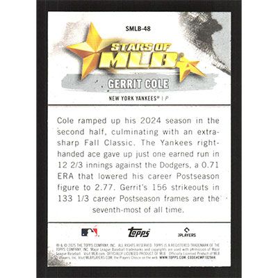This is a 2025 Topps Stars of MLB Gerrit Cole baseball card. The card is #SMLB-48 and pictures show condition.