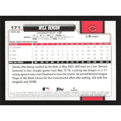 This is a 2026 Topps Will Benson baseball card. The card is #171 and pictures show condition.