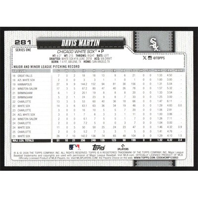 This is a 2026 Topps Davis Martin baseball card. The card is #281 and pictures show condition.