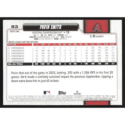 This is a 2026 Topps Pavin Smith baseball card. The card is #93 and pictures show condition.
