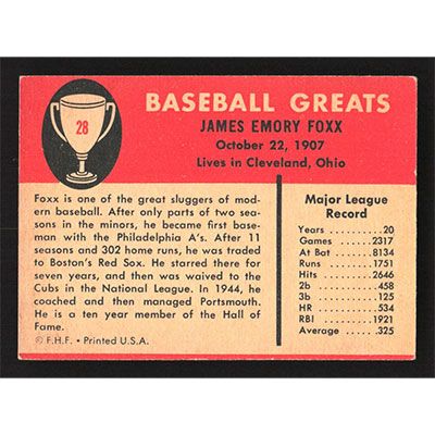 This is a 1961 Fleer Jimmie Foxx Error - Jimmy baseball card. The card is #28 and pictures show condition.