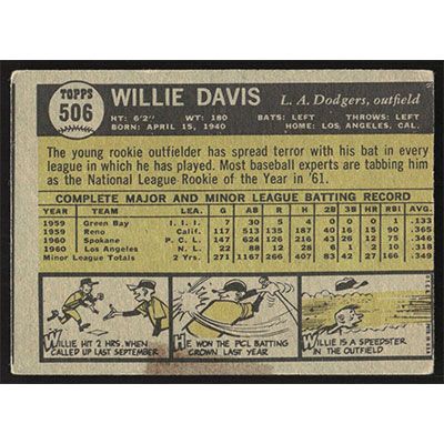 This is a 1961 Topps Willie Davis baseball card. The card is #506 and pictures show condition.