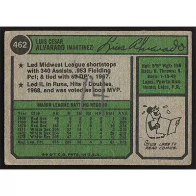 This is a 1974 Topps Luis Alvarado baseball card. The card is #462 and pictures show condition.