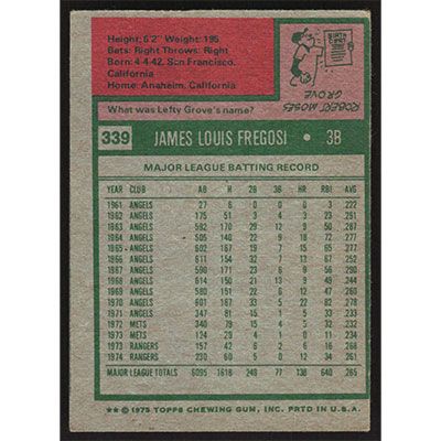 This is a 1975 Topps Jim Fregosi baseball card. The card is #339 and pictures show condition.