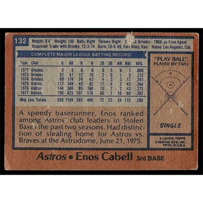 This is a 1978 Topps Enos Cabell baseball card. The card is #132 and pictures show condition.