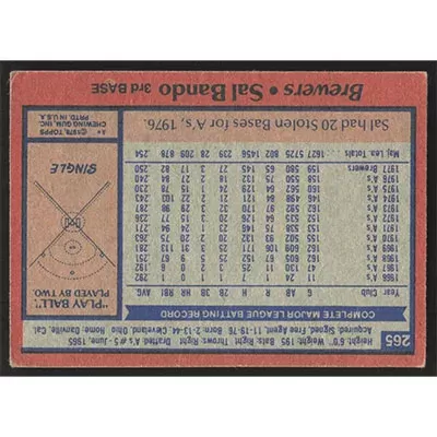 This is a 1978 Topps Sal Bando baseball card. The card is #265 and pictures show condition.
