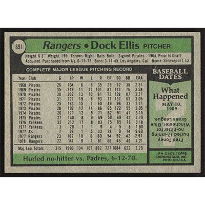 This is a 1979 Topps Dock Ellis baseball card. The card is #691 and pictures show condition.