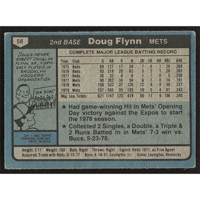 This is a 1980 Topps Doug Flynn baseball card. The card is #58 and pictures show condition.