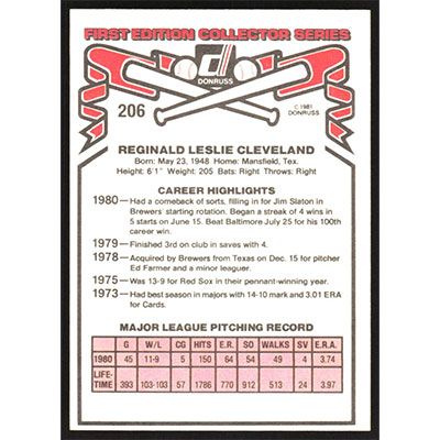 This is a 1981 Donruss Reggie Cleveland baseball card. The card is #206 and pictures show condition.