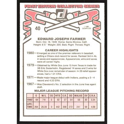 This is a 1981 Donruss Ed Farmer baseball card. The card is #40 and pictures show condition.