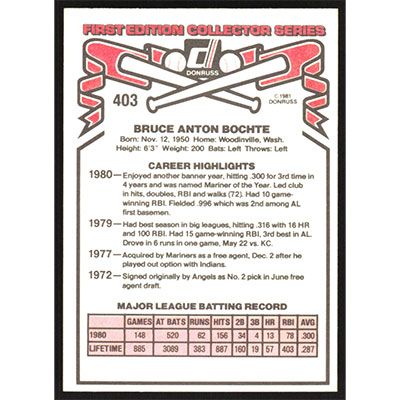 This is a 1981 Donruss Bruce Bochte baseball card. The card is #403 and pictures show condition.