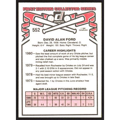 This is a 1981 Donruss Dave Ford baseball card. The card is #552 and pictures show condition.